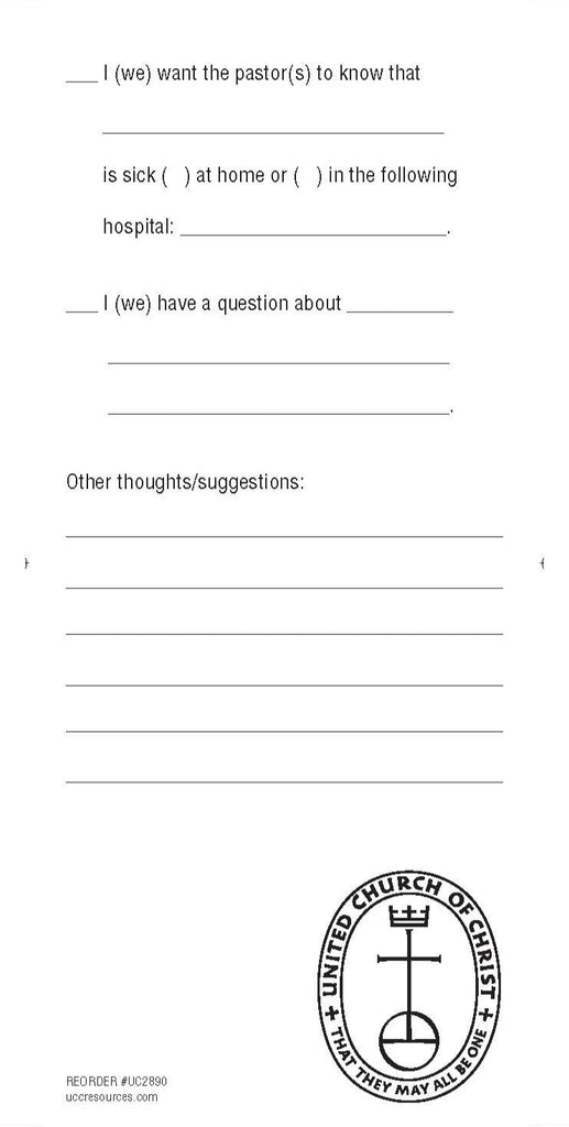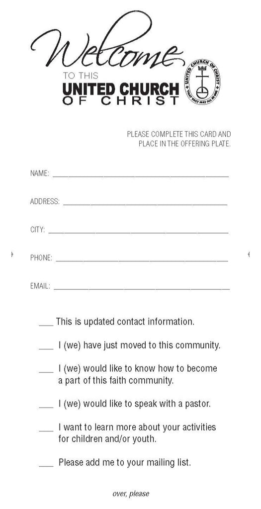 These two-sided Welcome or Visitor cards featuring the United Church of Christ logo. The front of card reads as follows: "Welcome to this United Church of Christ.
